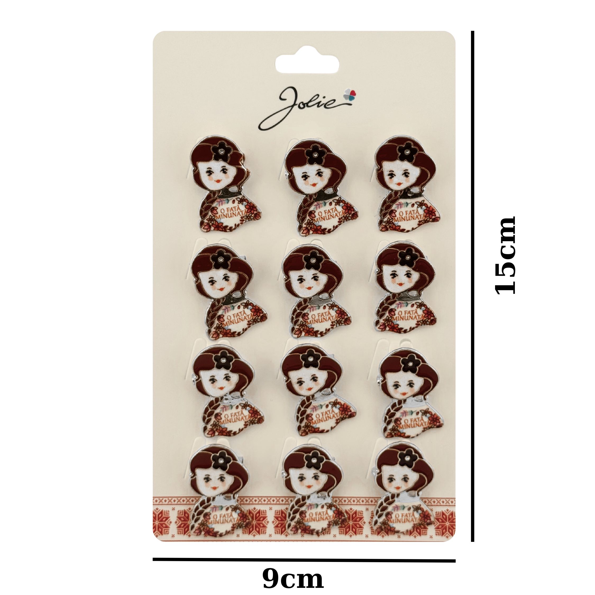 Brose Martisor Primavara, Jolie, Set 12 Bucati, Model cu Mesaj O Fata Minunata, Brosa din Metal, 3 x 2 cm per Bucata, Rosu inchis
