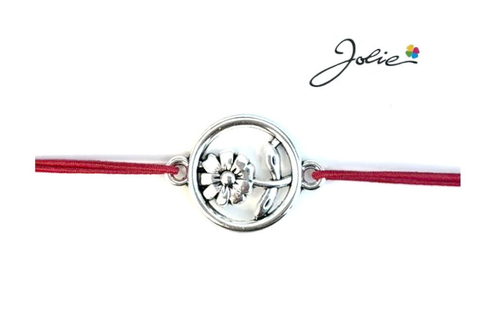 Martisor tip Bratara cu Pandantiv Metalic, Jolie, Snur Textil Rosu, Model Floare Cerc, Dimensiune Reglabila, Nod Dublu, Ambalata Individual