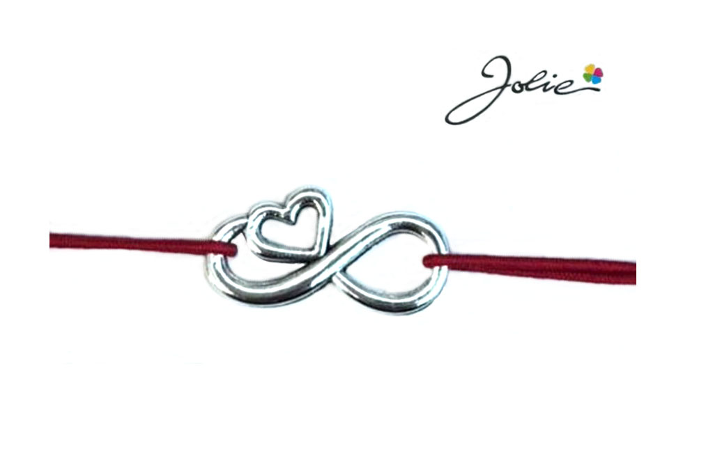 Martisor tip Bratara cu Pandantiv Metalic, Jolie, Snur Textil Rosu, Model Infinit Inima, Dimensiune Reglabila, Nod Dublu, Ambalata Individual