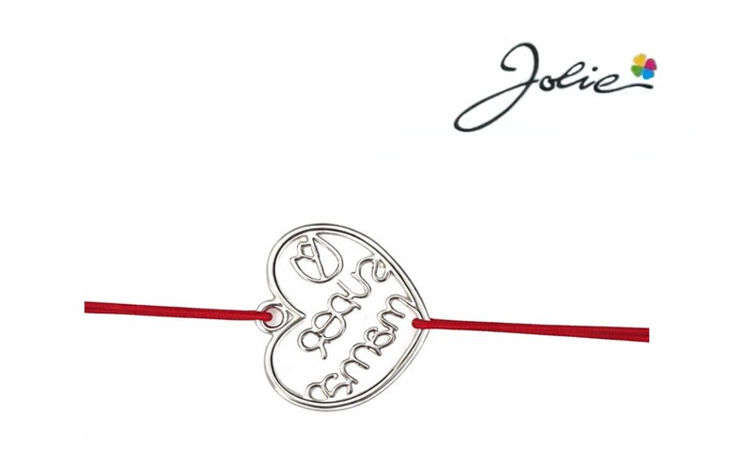 Martisor tip Bratara cu Pandantiv Metalic, Jolie, Snur Textil Rosu, Model Inima Super Mama, Dimensiune Reglabila, Nod Dublu, Ambalata Individual
