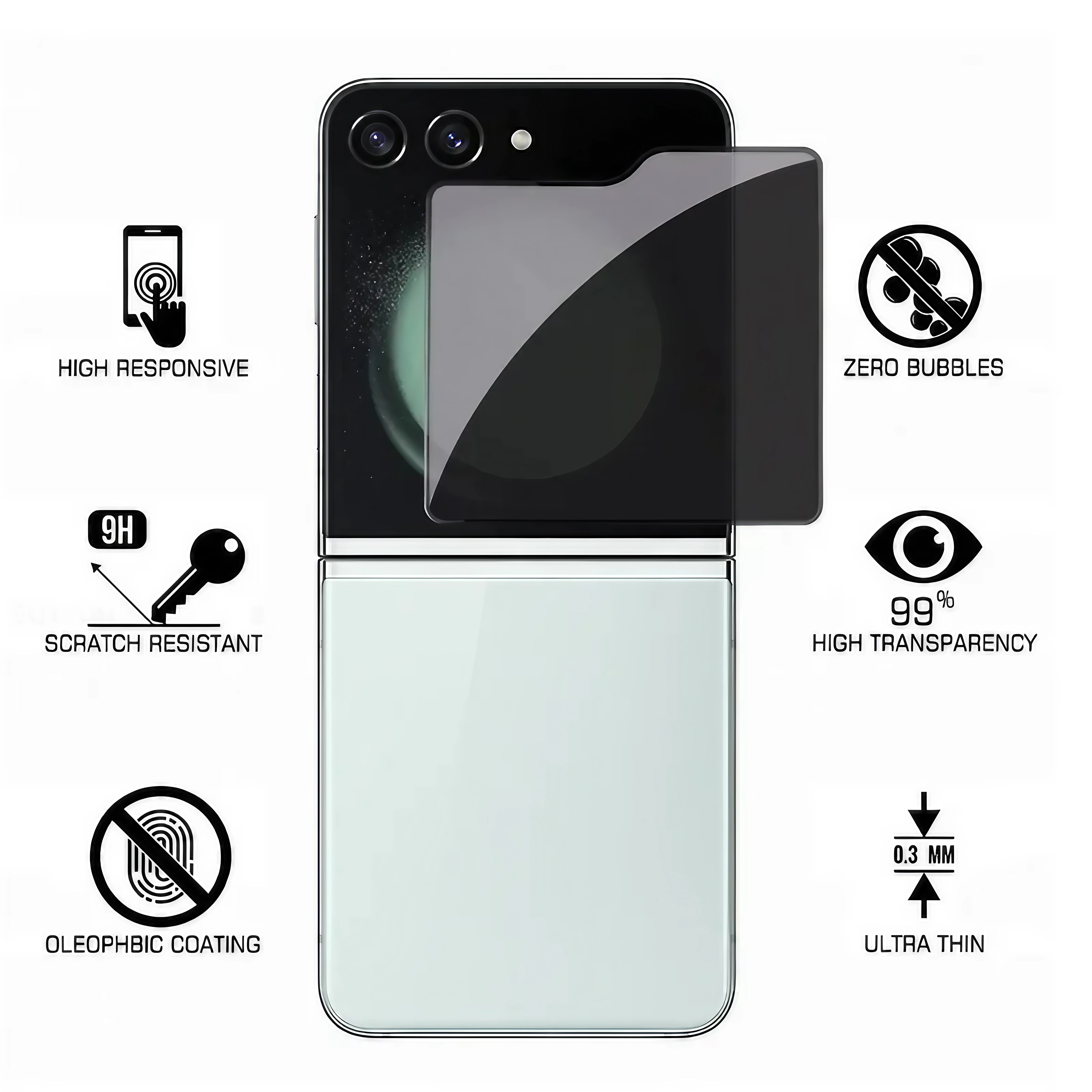 Folie Sticla Securizata, Flippy, Pentru Samsung Galaxy Z Flip 5, Full Glue, Margini Negre, Transparent