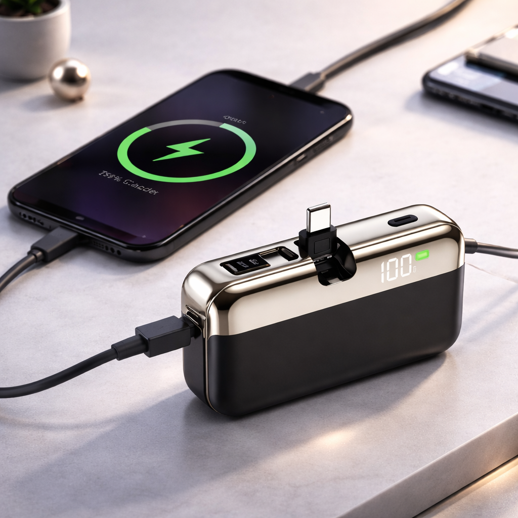 Baterie Externa, Flippy, Power Bank, Capsule, 10000 mAh, Design Compact, Incarcare Rapida, Compatibilitate Universala, 9 x 5 x 2,5 cm, Negru