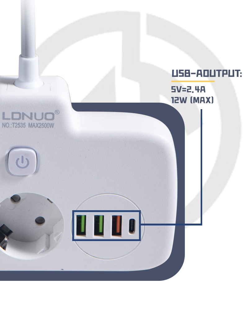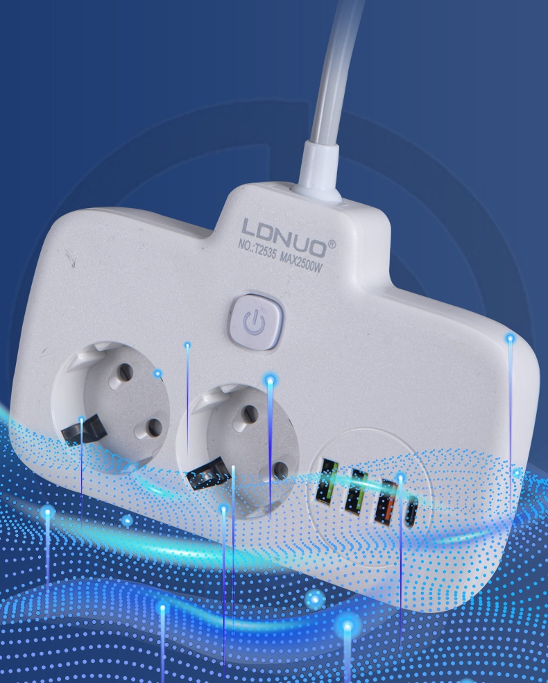 Adaptor Priza, Flippy, 6 in 1, 2 Prize Standard, 3 Porturi USB, 1 Port Tip C, Buton Oprire, 2500W, din PC, Alb
