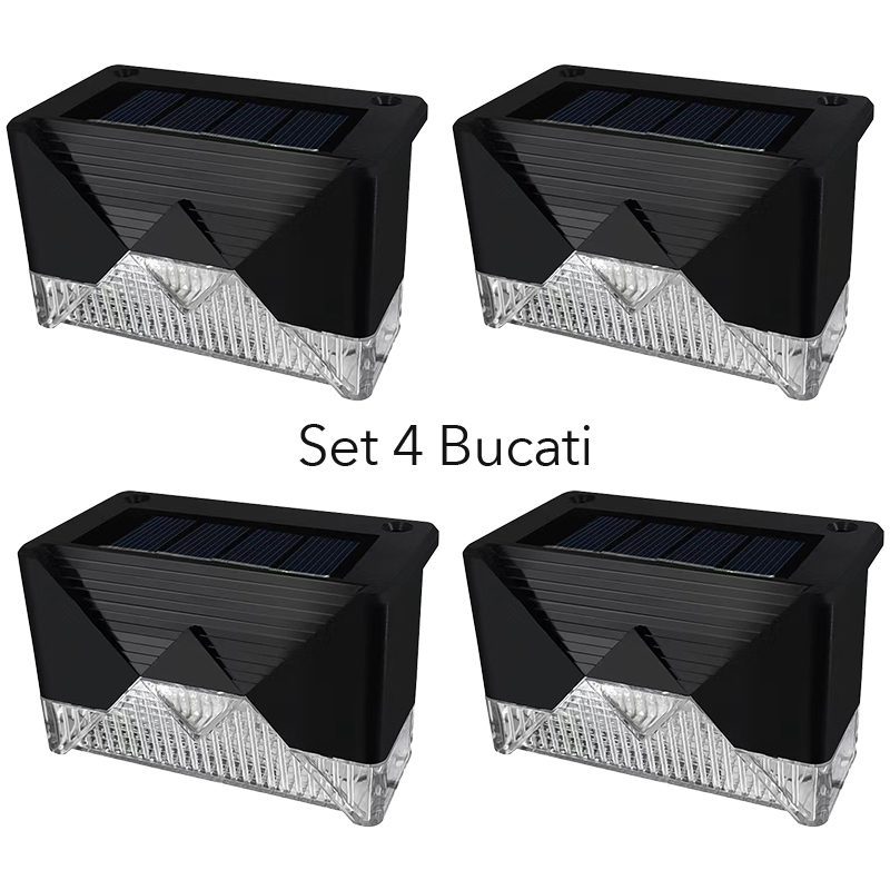 Aplica solara LED pentru Gradina, Flippy, Set 4 Bucati, ABS/Policarbonat, rezistenta la apa IP65, pentru trepte, borduri, terasa, 1.2V, 600mah, 7.9 x 5 cm, Lumina Alb calda, Negru