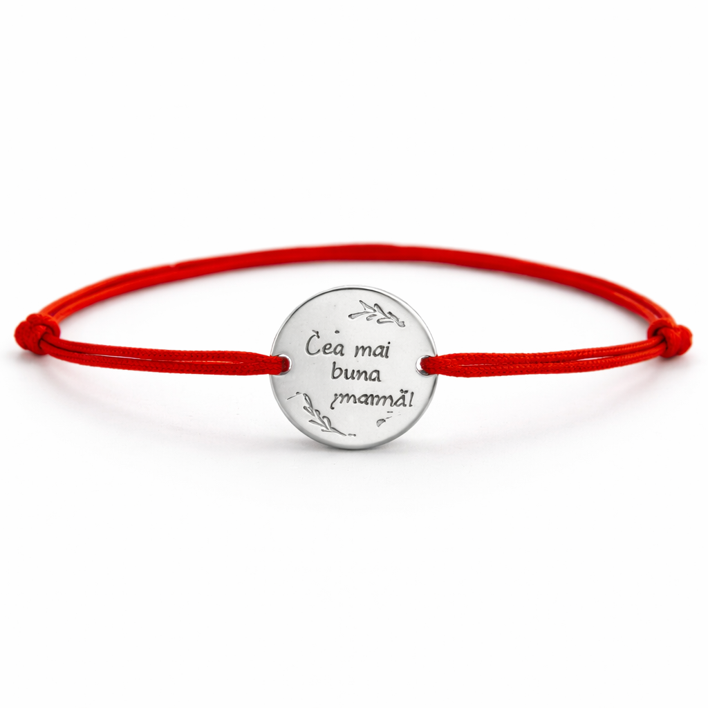 Bratara Martisor, Jolie Silver, Model Cea Mai Buna Mama, Argint 925, Snur Textil, 7.5 x 4.5 cm, Argintiu