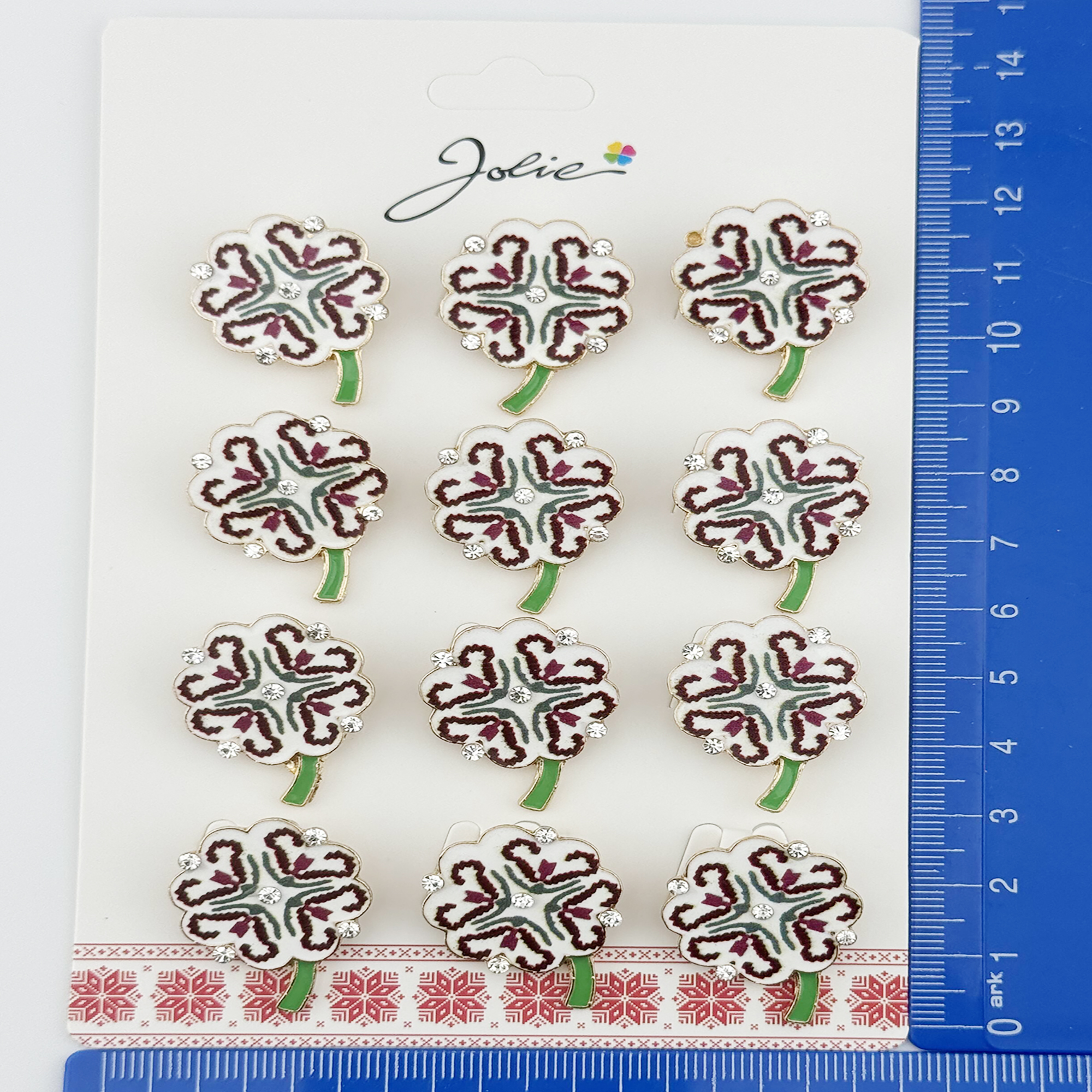 Brose Martisor, Jolie, Set 12 Bucati, Model Trifoi Traditional, Metal, 3 cm, Alb