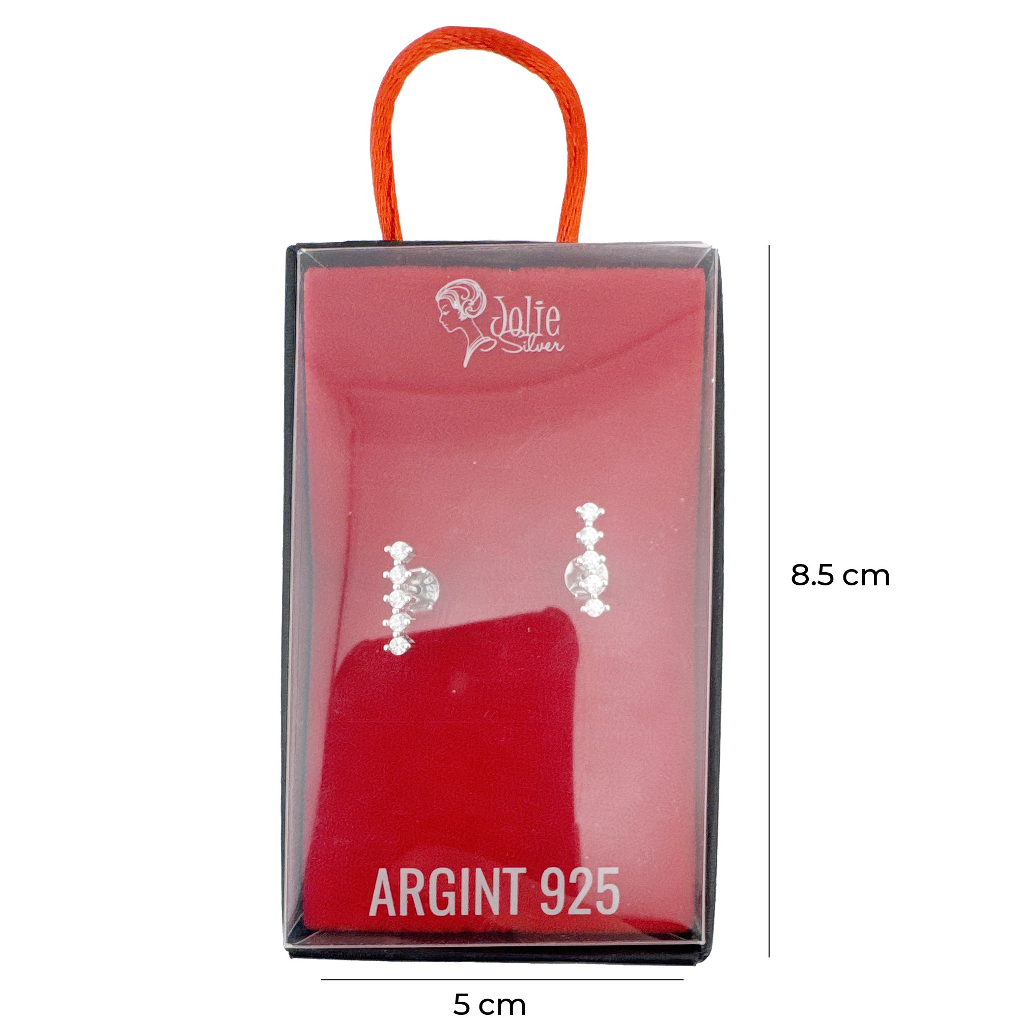 Cercei Dama Argint 925, Jolie, Model Bagheta cu 5 Pietre mici, 1.04 g, Argintiu
