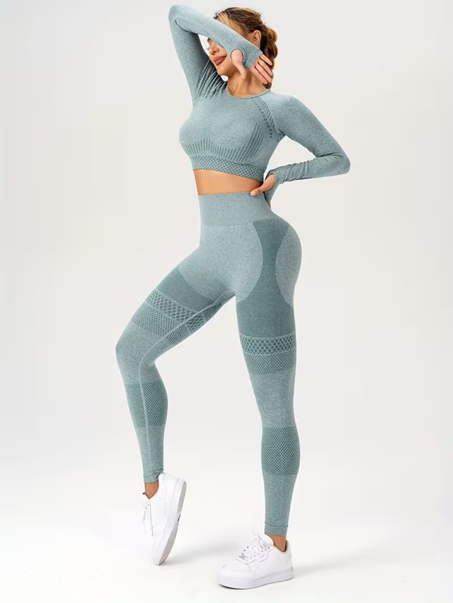 Costum Sport de Dama, Flippy, pentru Yoga, Talie Inalta, Top Scurt, Elastic, Verde Menta, Marime L