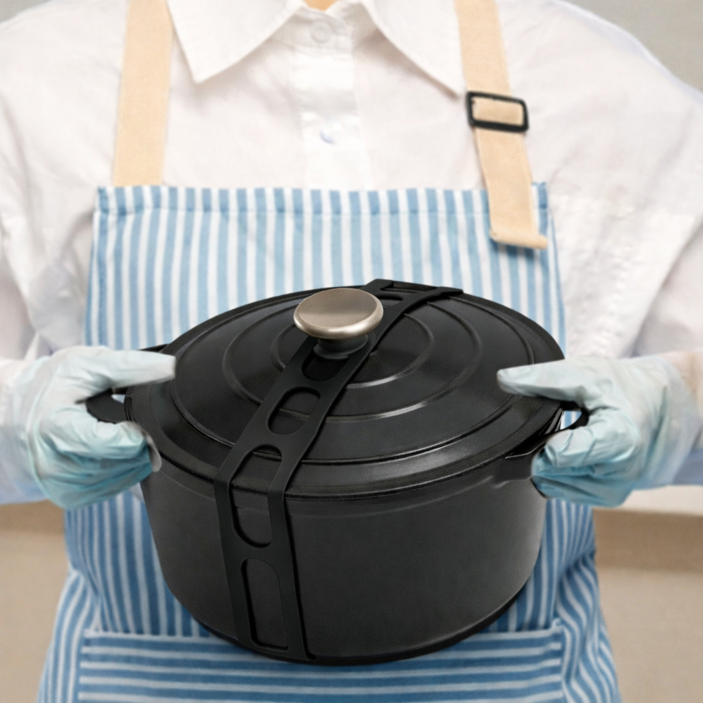 Curea de Fixare pentru Capace si Vase, Flippy, Silicon Reutilizabil, Rezistenta la Temperaturi Ridicate, 54 x 5 cm, Negru