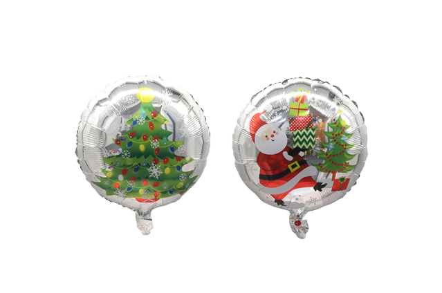 Balon Rotund, Flippy, din Folie de Aluminiu, Tema Craciun, Model Mos Craciun si Brad, 44.5x53 cm, Multicolor