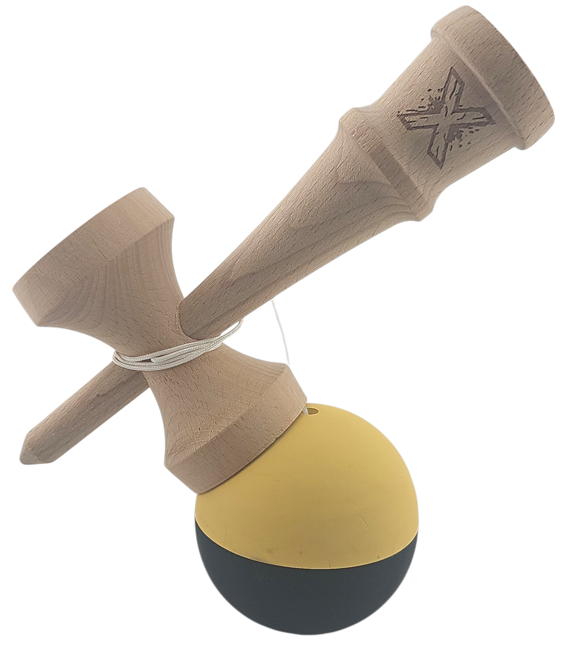Kendama X Originala, Profesionala, Flippy, din Lemn, Rubber Grip, 18 cm, Galben/Negru