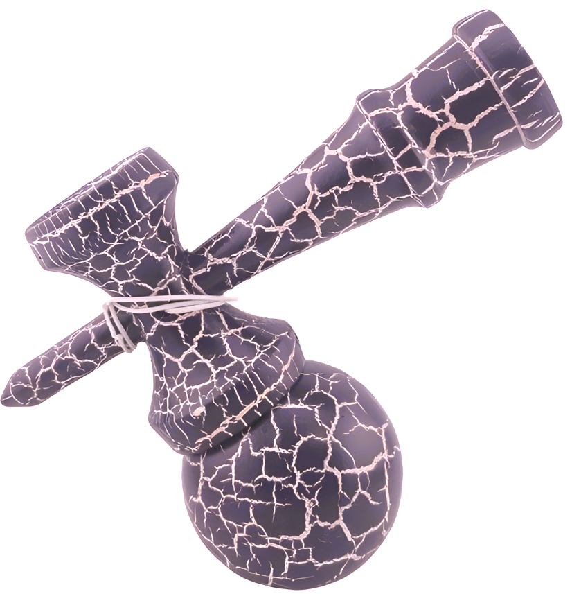Kendama X Originala, Profesionala, Flippy, Kendama Cracked, din Lemn – 18 cm, Crack Mov/Alb