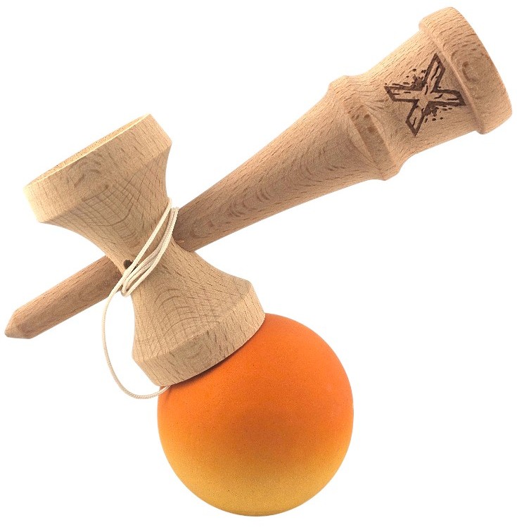 Kendama X Originala, Profesionala, Flippy, Rubber Grip, din Lemn, 18 cm, Portocaliu/Galben