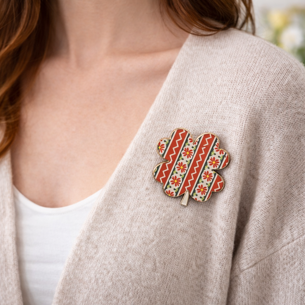 Martisor Brosa Mica in Cutie, Jolie, Model Trifoi Traditional, Metal, 2,5-3 cm, Multicolor