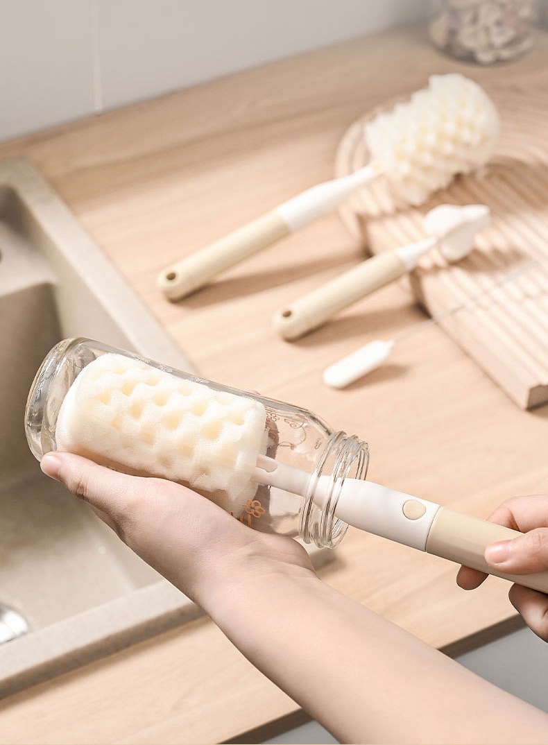 Set 3 Perii de Spalat Biberoane, Flippy, pentru Tetina, Biberon, Pai, Materiale Sigure, fara BPA, Curatare 360°, Bej