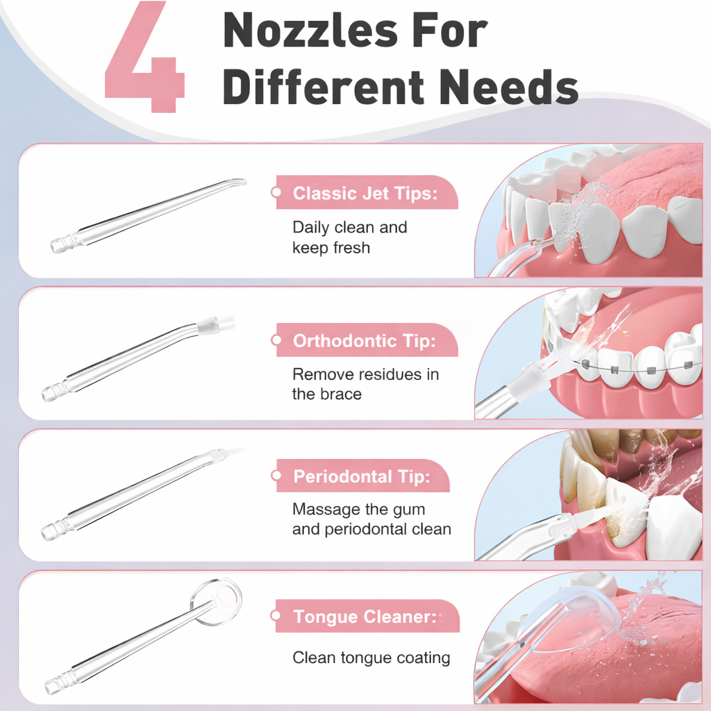 Irigator Bucal Electric, Flippy, Portabil, Dus Bucal pentru Curatare, Indepartare Tartru, 4 Capete, 25 x 8 x 8 cm, Negru