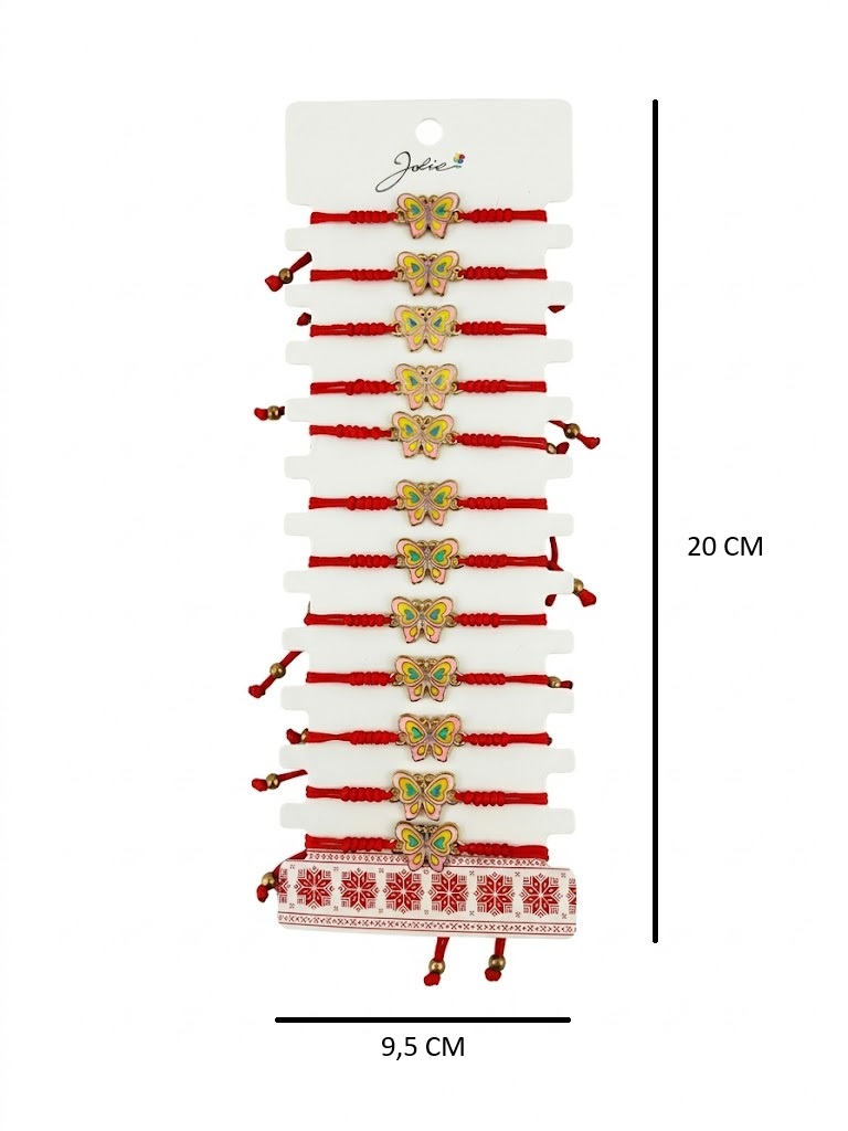 Bratara Martisor Pentru Dama, Jolie, Model Fluture, Set 12 Bucati, Pandativ din Aliaj cu Print, Snur Ajustabil Impletit, Multicolor