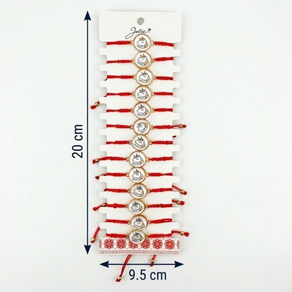 Bratara Martisor Pentru Dama, Jolie, Model Unicorn, Set 12 Bucati, Pandativ din Aliaj cu Print, Snur Ajustabil Impletit, Multicolor