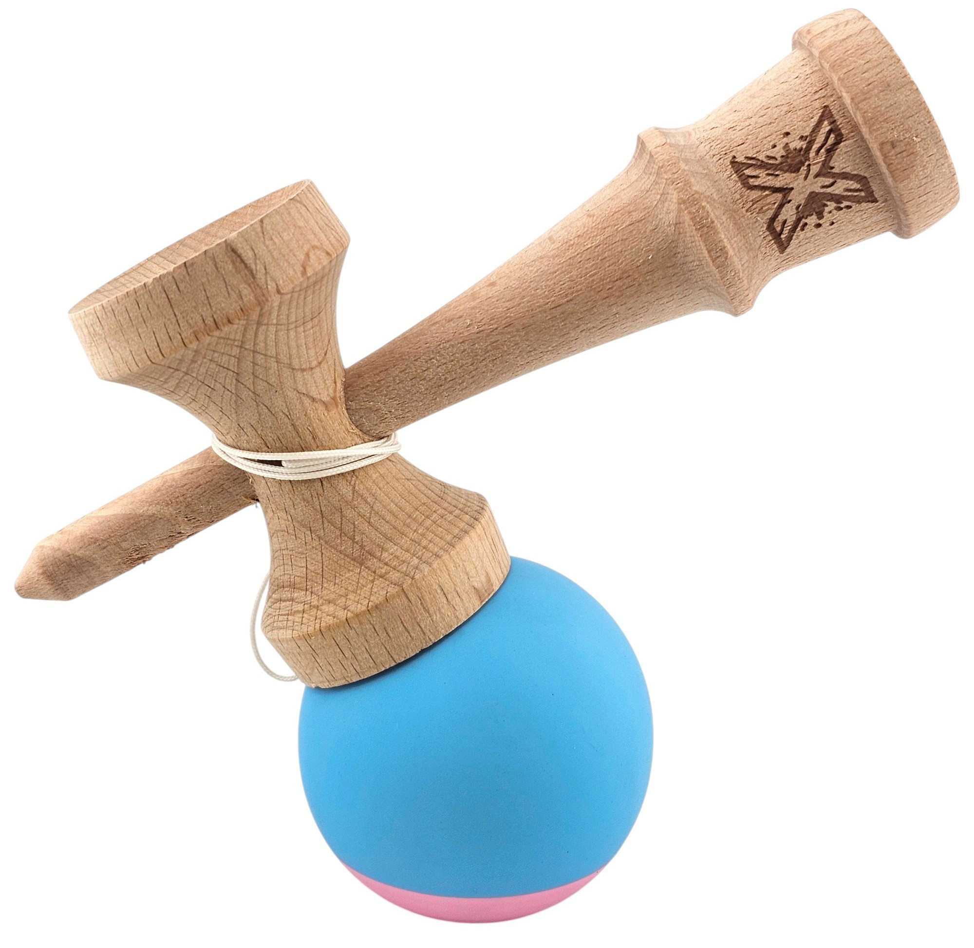 Jucarie Interactiva Kendama Profesionala, Flippy, din Lemn, 18 cm, Joc de Indemanare pentru Copii si Adulti, Bicolor Turcoaz Roz