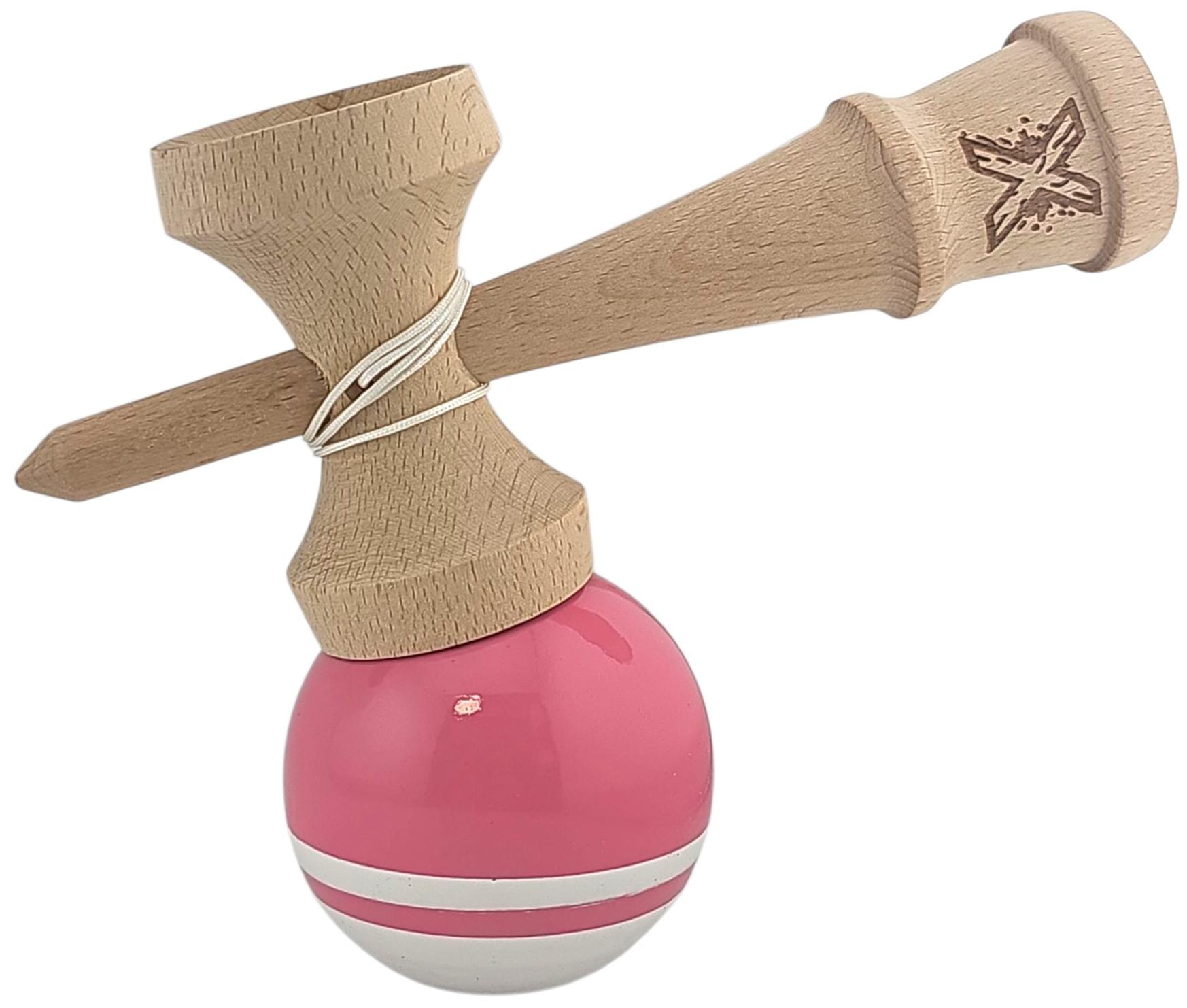 Jucarie Kendama X Originala, Profesionala, Flippy, Super Sticky din Lemn, 18 cm, pentru Copii si Adulti, Roz/Alb