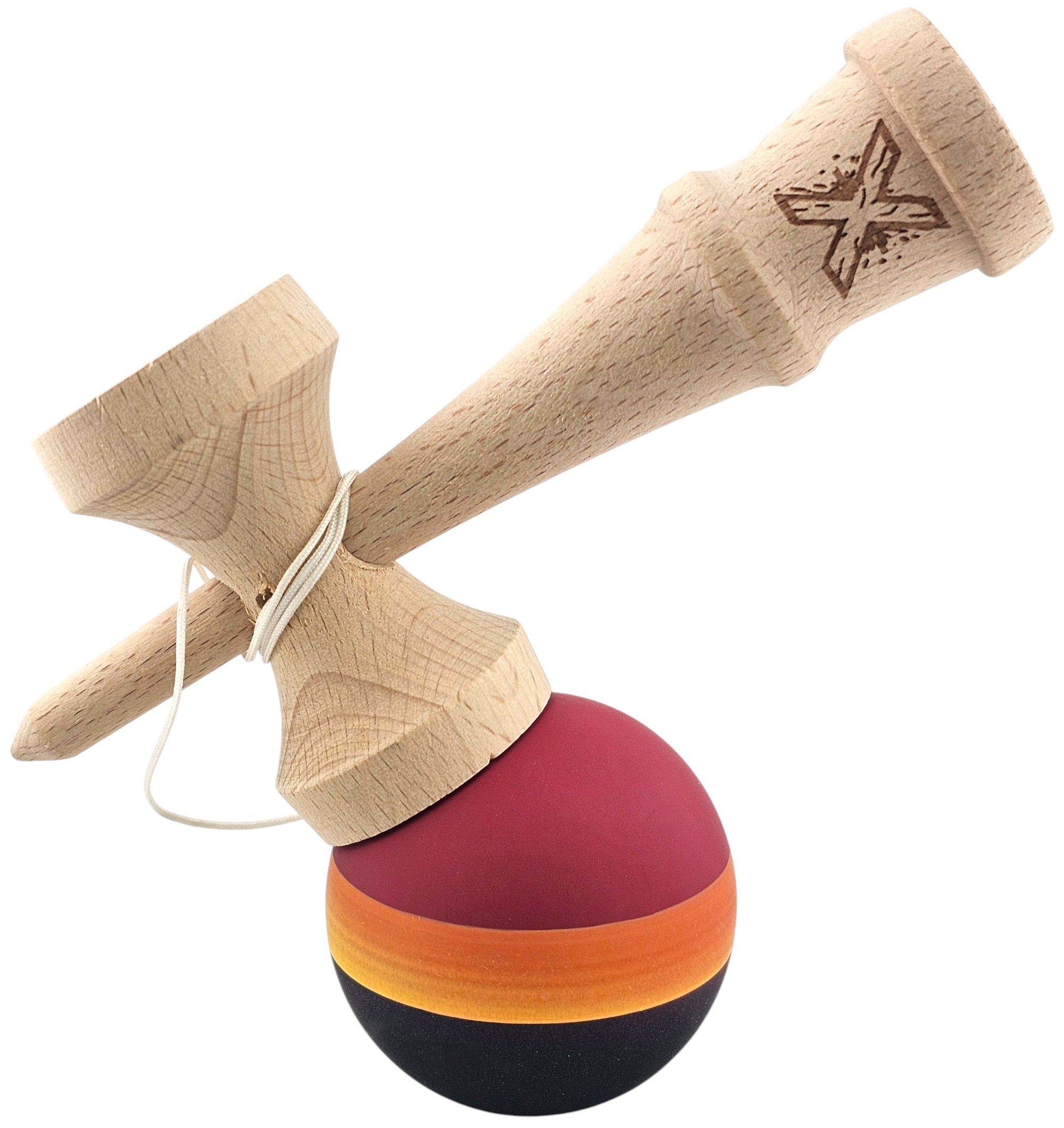Kendama Originala X, Profesionala, Flippy, Rubber Grip, din Lemn, 18 cm, Rosu/Galben/Negru