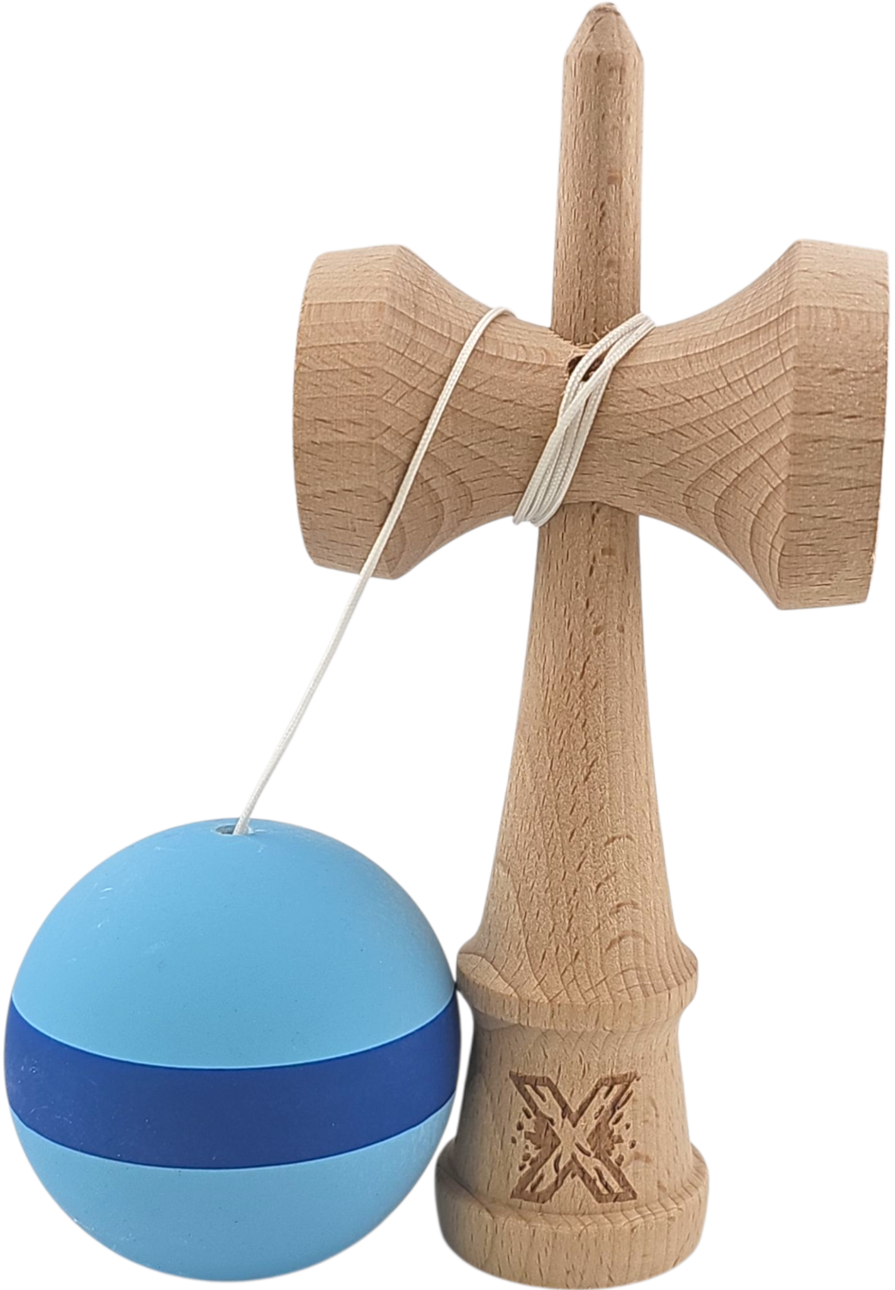 Kendama X Originala, Profesionala, Flippy, 18 cm din Lemn, Model cu Dunga, Bleu/Albastru
