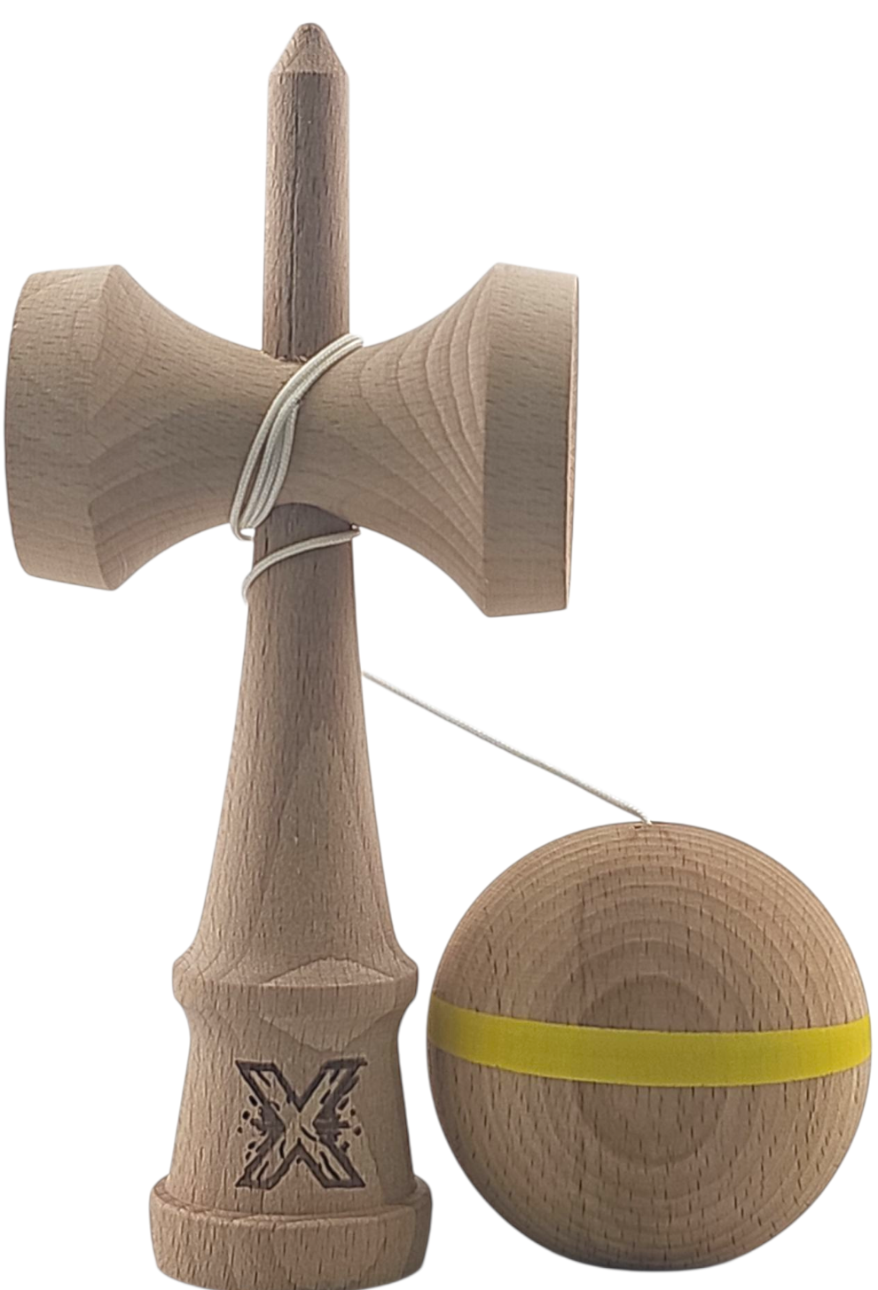 Kendama X Originală, Profesională, Flippy, din Lemn, 18 cm, cu Dunga, Galben, Lemn