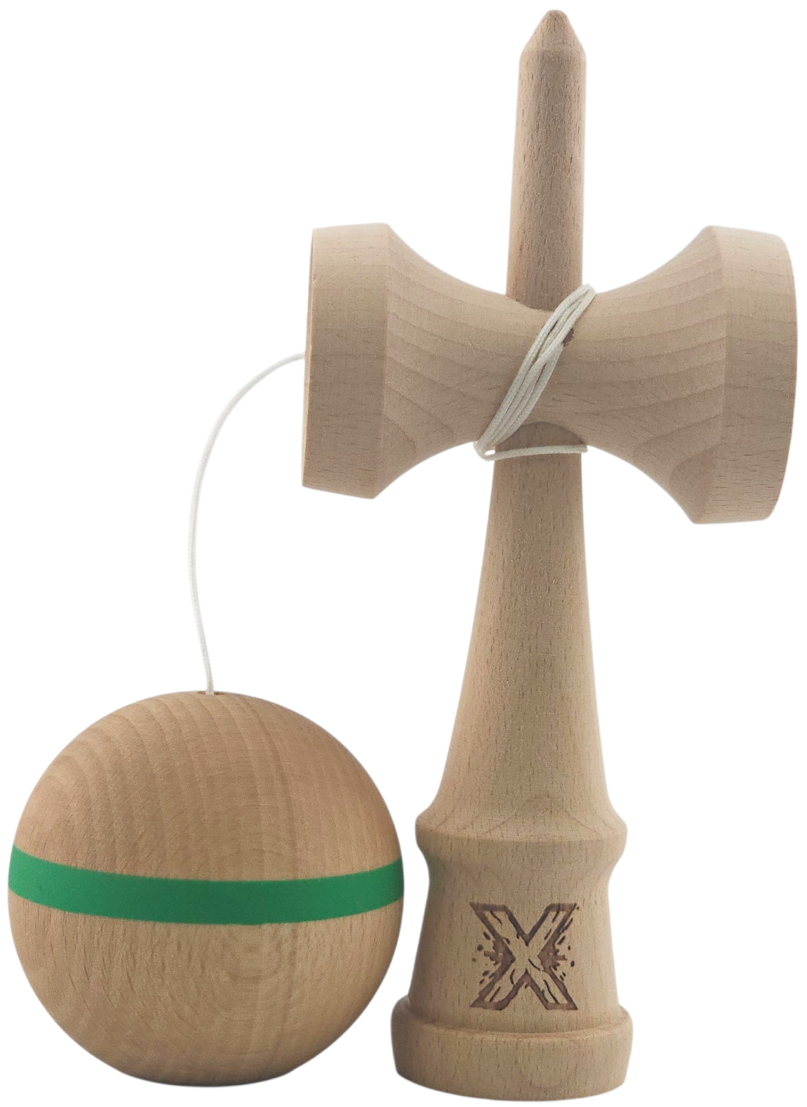 Kendama X Originală, Profesională, Flippy, din Lemn,18 cm, Model cu Dunga Verde