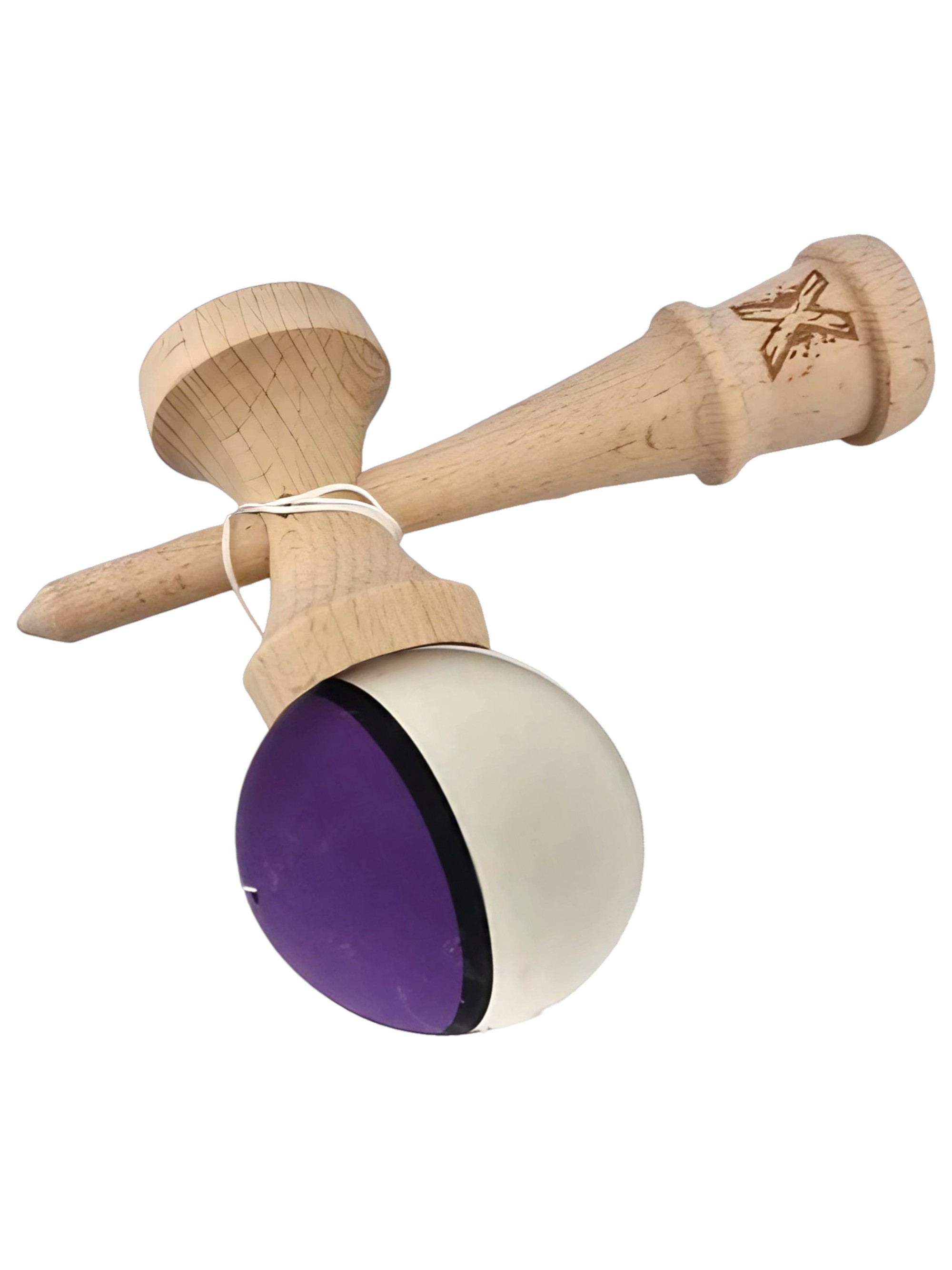 Kendama X Originala, Profesionala, Flippy, din Lemn, 18 cm, Multicolor Mov/Negru/Alb