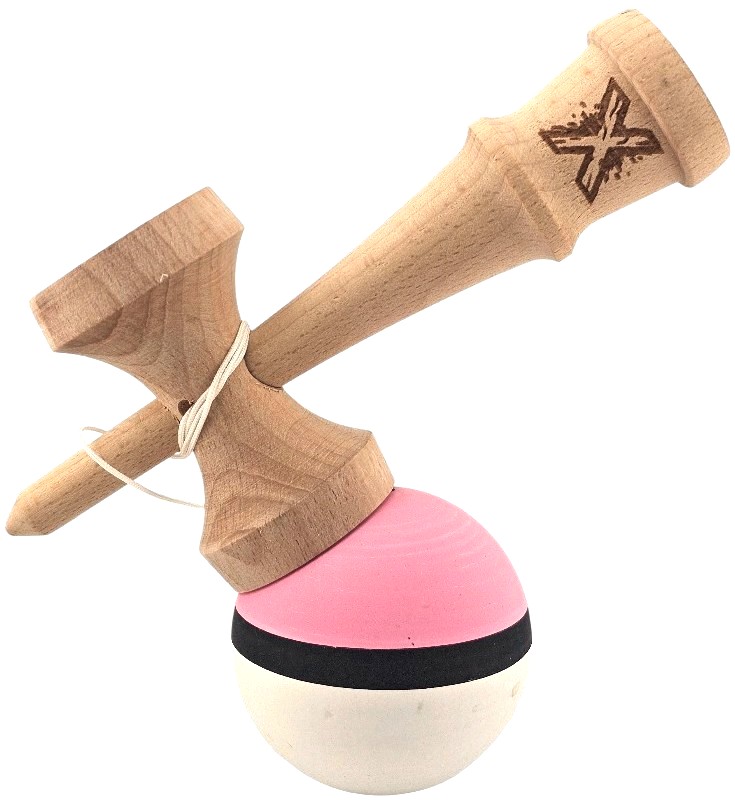 Kendama X Originala, Profesionala, Flippy, din Lemn, 18 cm, Rubber Grip, Roz/Negru/Alb