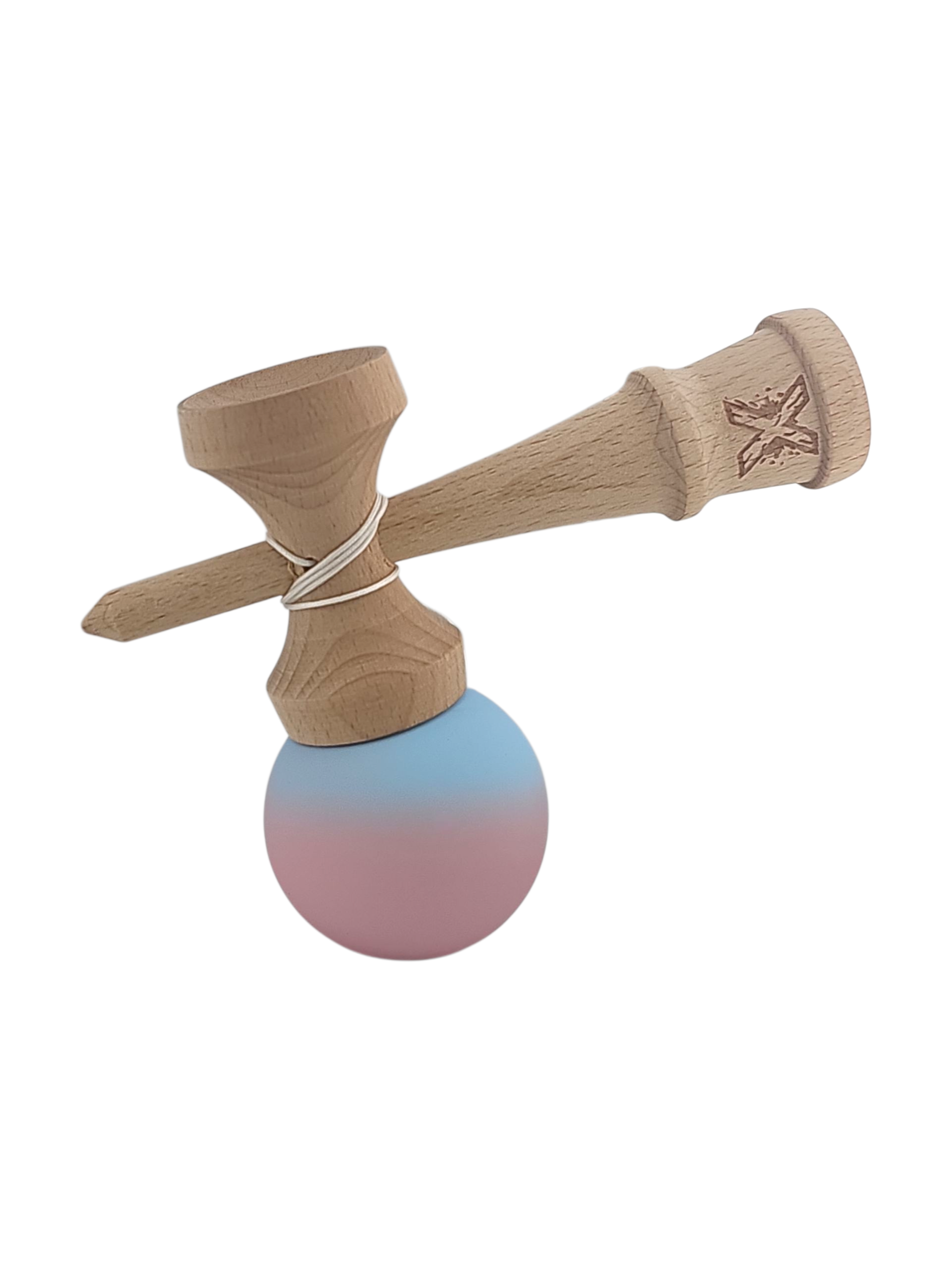 Kendama X Originala, Profesionala, Flippy, din Lemn, Rubber Grip, 18 cm, Albastru/Lila