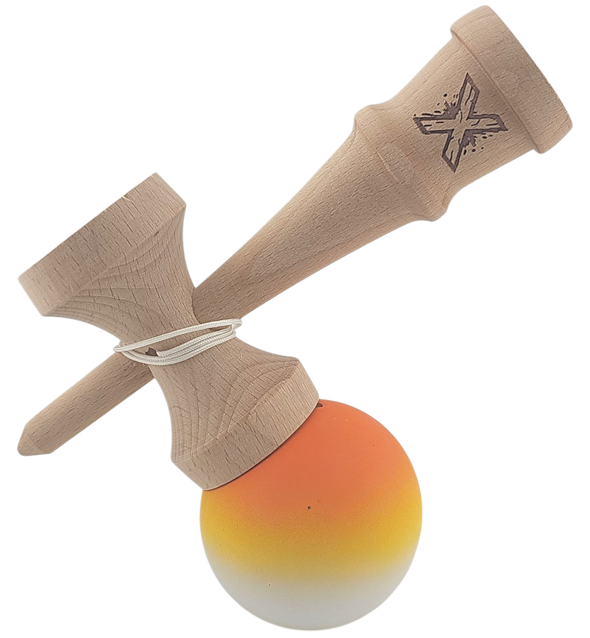 Kendama X Originala, Profesionala, Flippy, din Lemn, Rubber Grip, 18 cm, Gradient Portocaliu/Galben/Alb