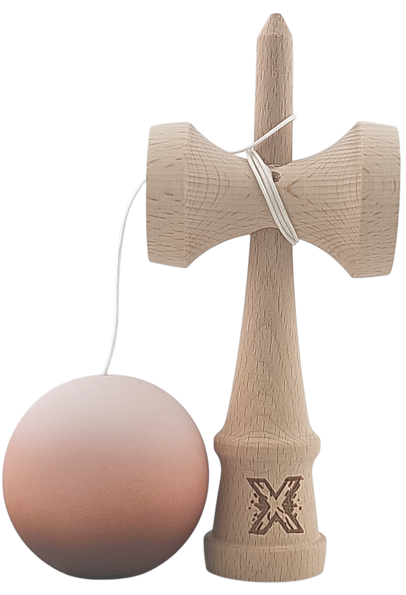 Kendama X Originala, Profesionala, Flippy, din Lemn, Rubber Grip, 18 cm, Maro/Bej/Roz