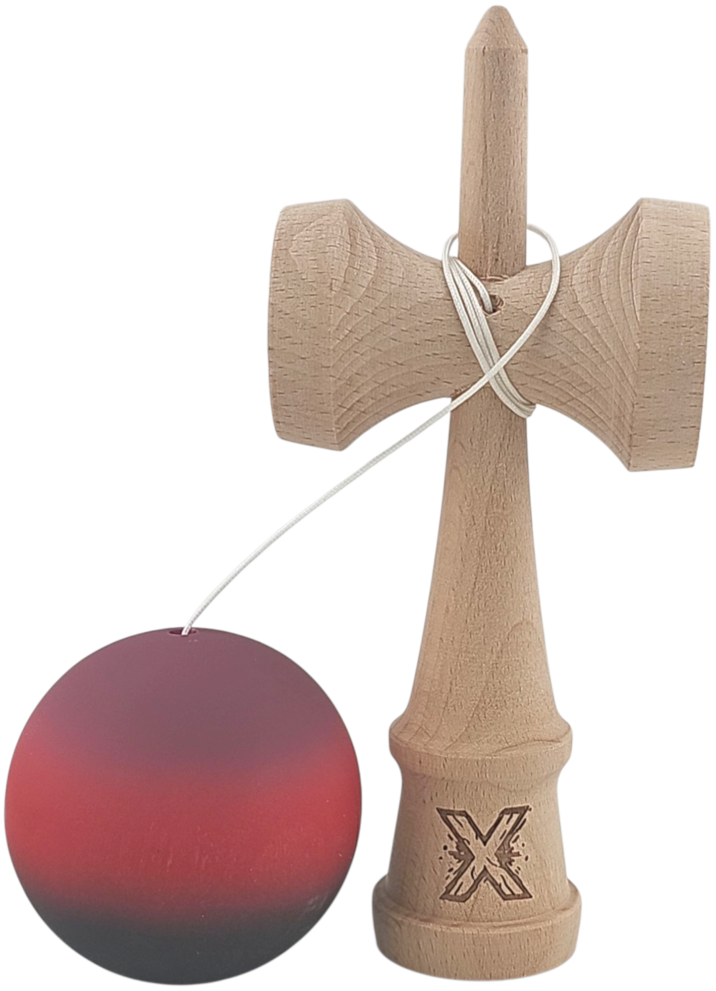 Kendama X Originala, Profesionala, Flippy, din Lemn, Rubber Grip, 18 cm, Mov/Rosu/Negru