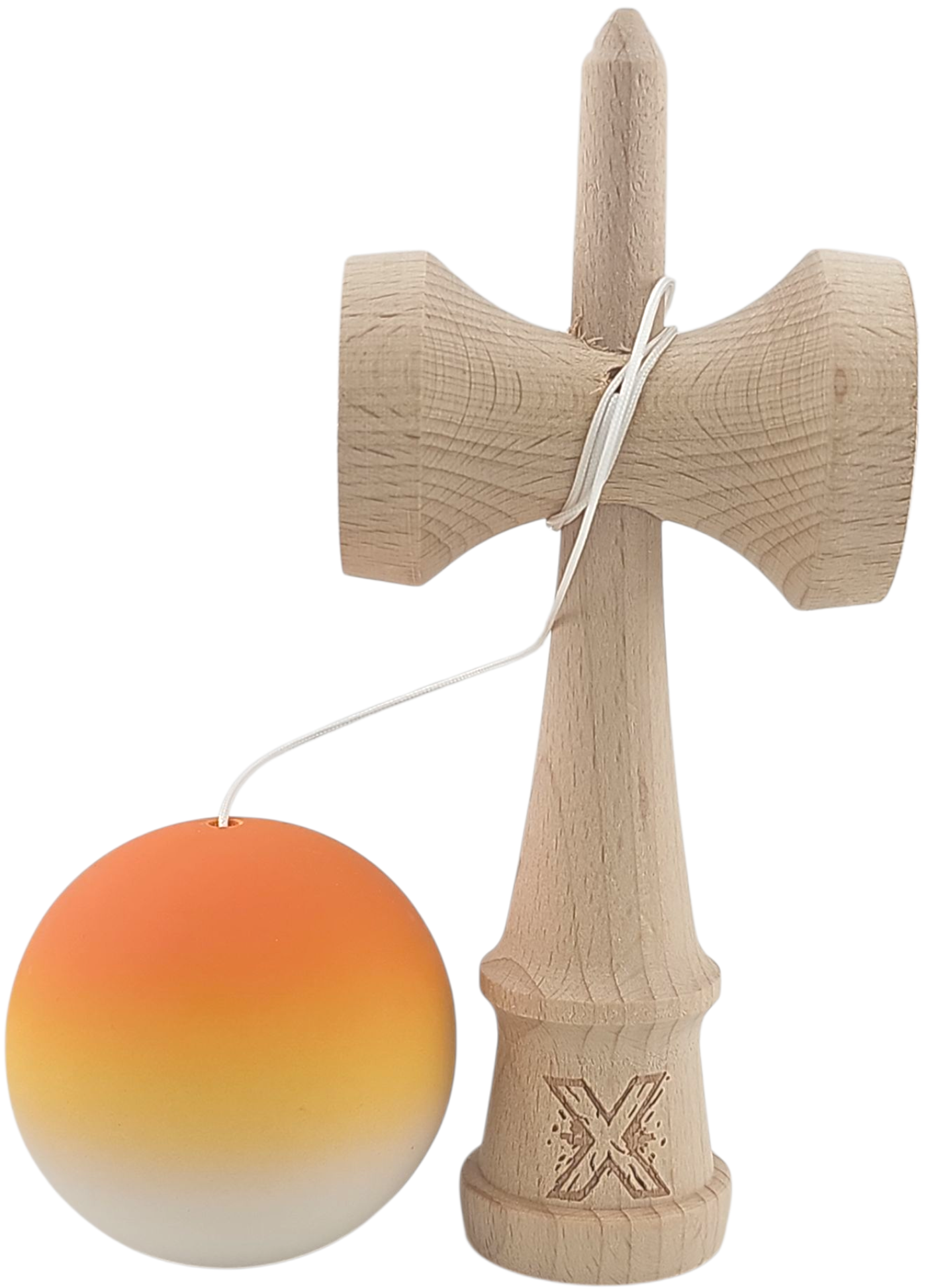 Kendama X Originala, Profesionala, Flippy, din Lemn, Rubber Grip, 18 cm, Portocaliu/Galben/Alb