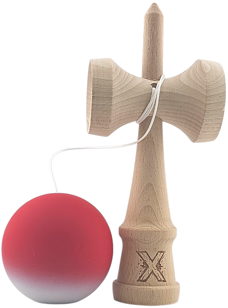 Kendama X Originala, Profesionala, Flippy, din Lemn, Rubber Grip, 18 cm, Rosu/Alb