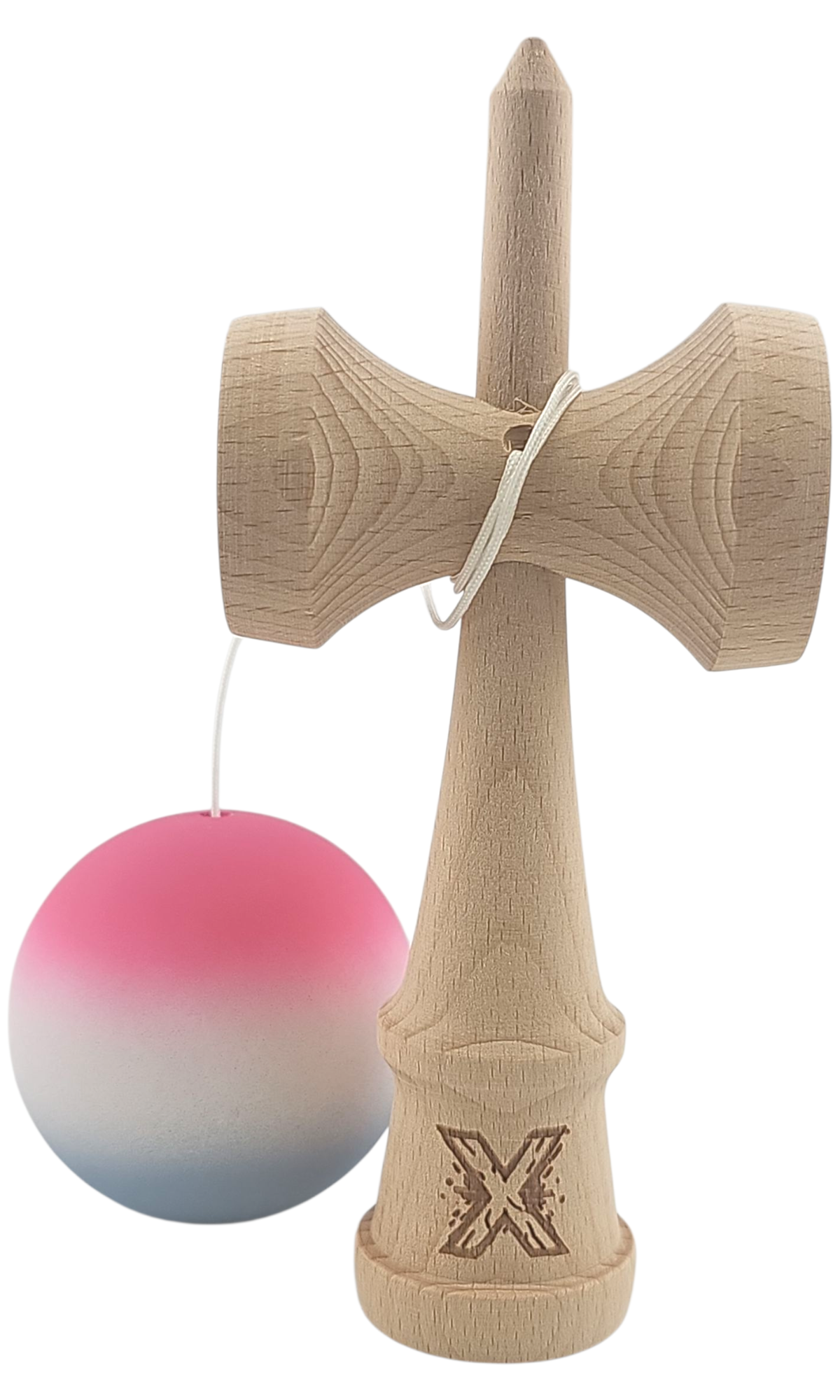 Kendama X Originala, Profesionala, Flippy, din Lemn, Rubber Grip, 18 cm, Roz/Alb/Gri