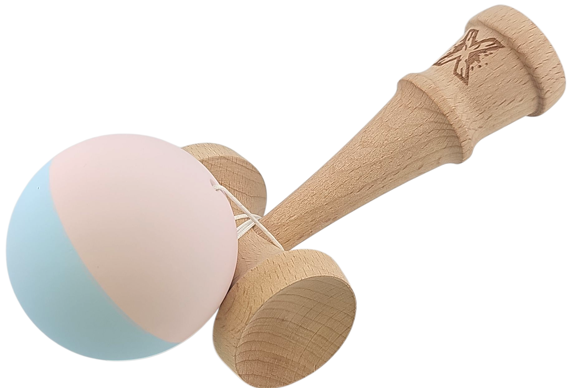 Kendama X Originala, Profesionala, Flippy, din lemn, Rubber Grip, 18 cm, Roz/Albastru