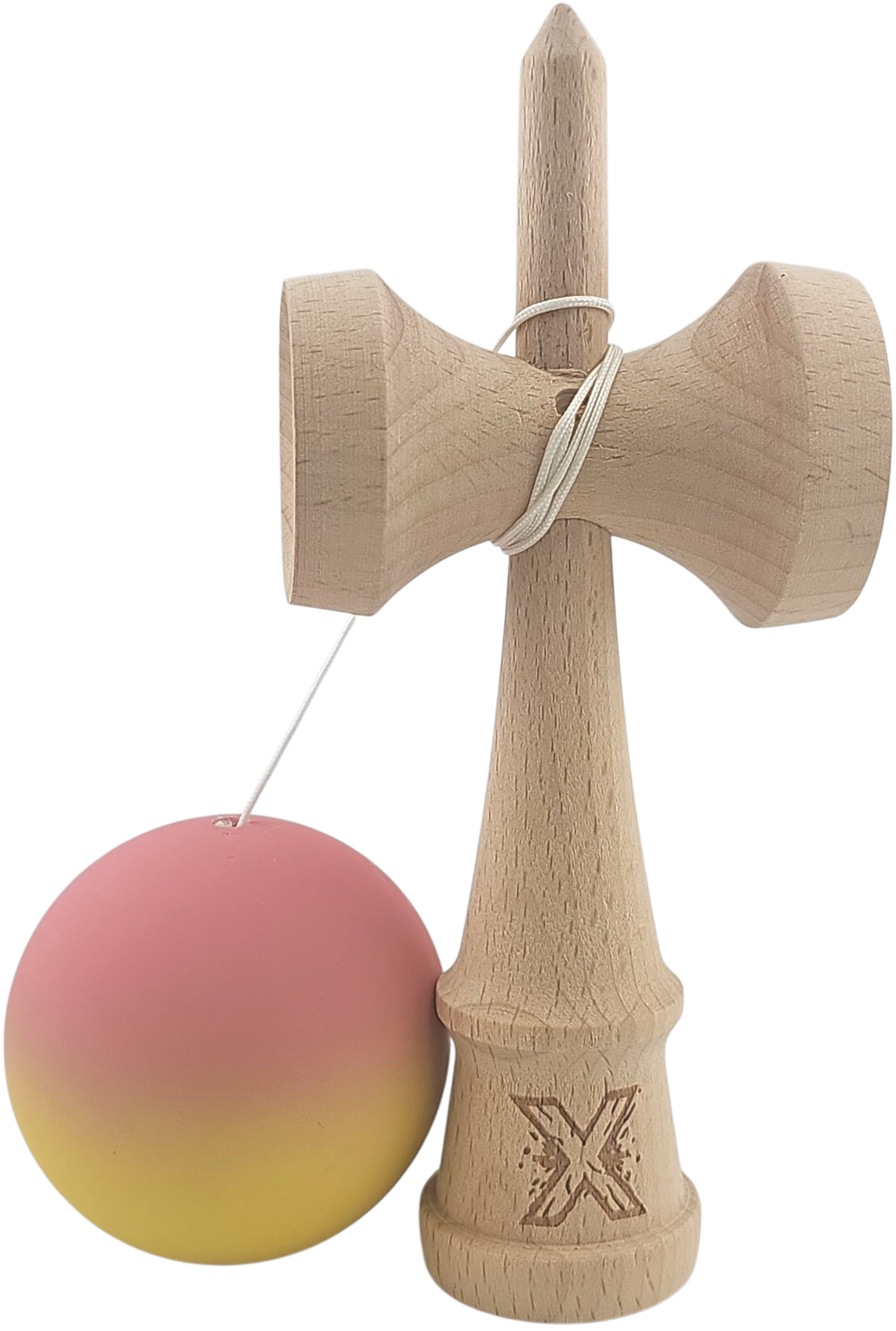Kendama X Originala, Profesionala, Flippy, din Lemn, Rubber Grip, 18 cm, Roz/Galben