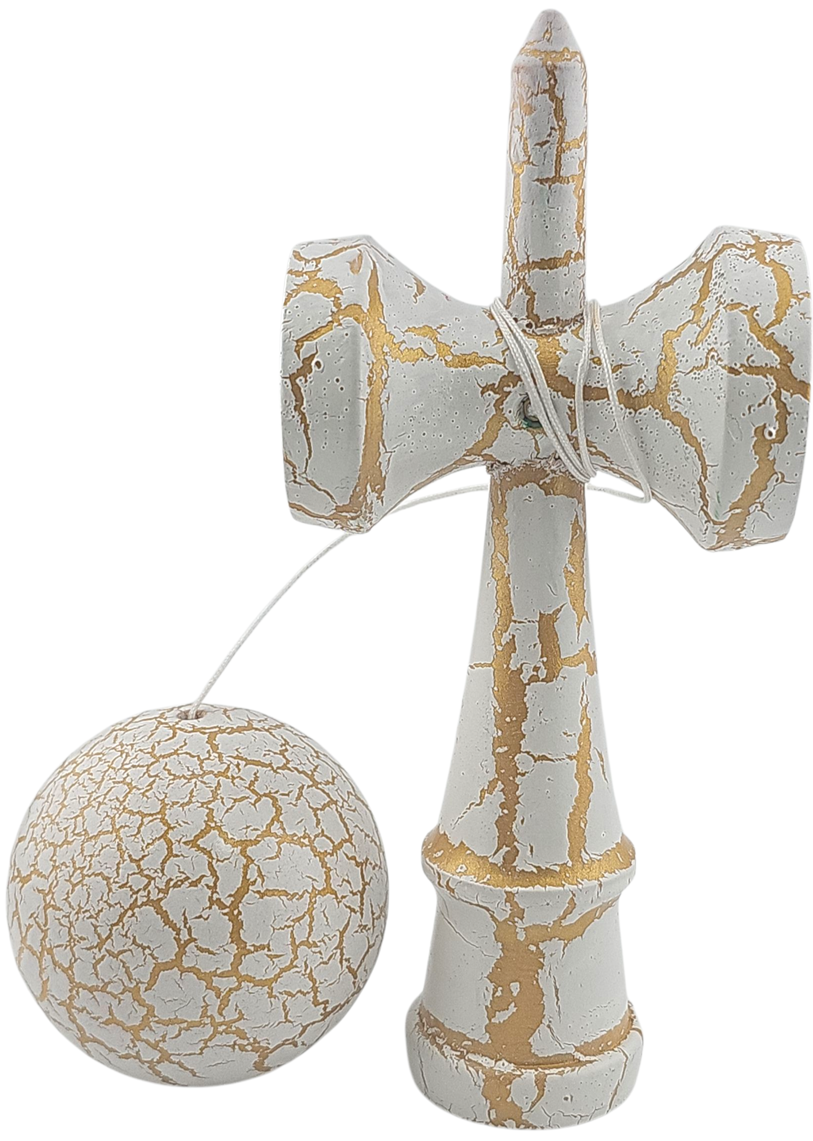 Kendama X Originala, Profesionala, Flippy, Kendama Cracked, din Lemn – 18 cm, Alb/Galben