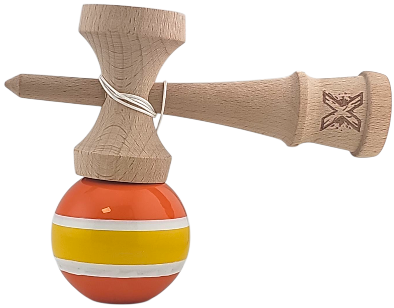 Kendama X Originala, Profesionala, Flippy, Super Sticky din Lemn, 18 cm, Portocaliu/Galben/Alb