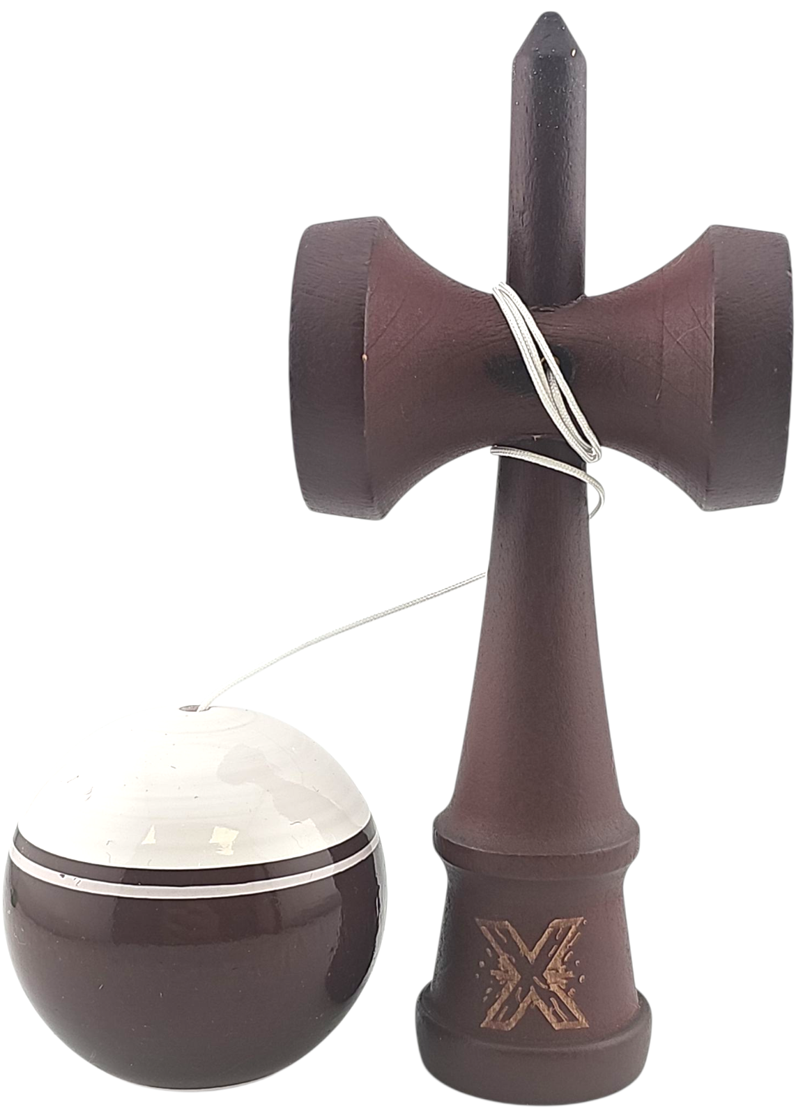 Kendama X Originala, Profesionala Limited, Flippy, din Lemn, Super Sticky, 18 cm, Alb/Maro inchis