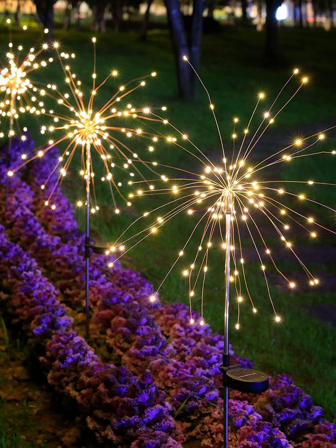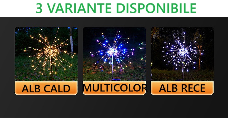 Lampa Solara, Flippy, Decor Gradina, Model Fireworks/Artificii, din Sarma de Cupru, 120 LED-uri, 55W, 90 cm, Alb Rece