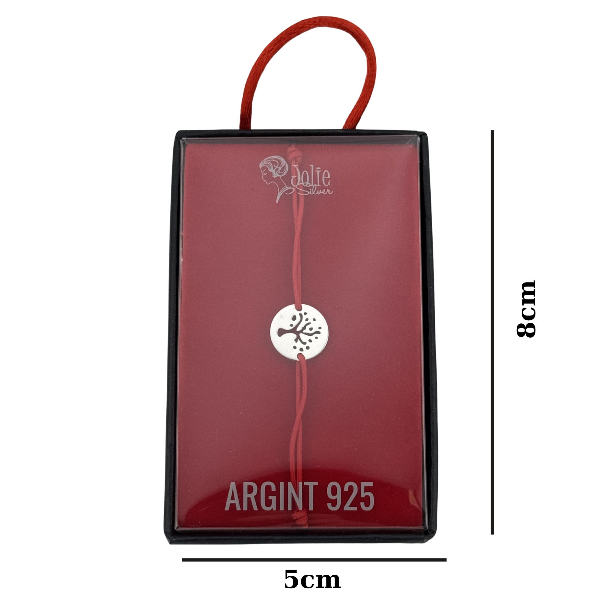 Martisor Bratara, Jolie, Argint 925, Model Pomul Vietii Decupat, Snur Rosu Reglabil, Fara Pietre, Argintiu