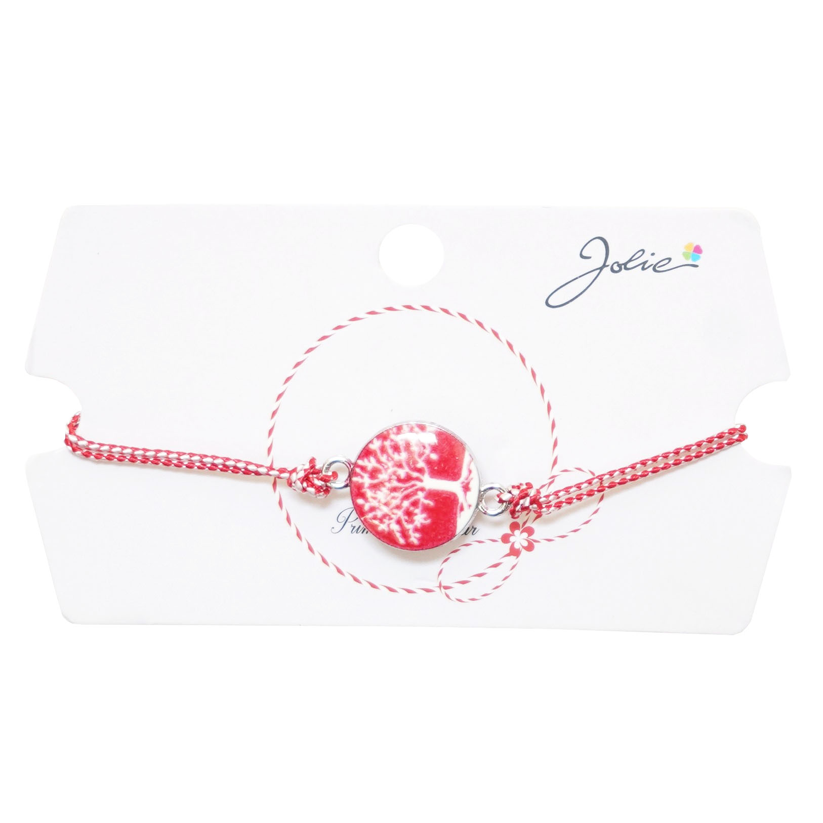 Martisor tip Bratara Traditionala cu Pandantiv, Jolie, Model Copacul Vietii, Snur Impletit Alb/Rosu, Dimensiune Pandativ Aprox 2 cm, Ambalaj cu Design
