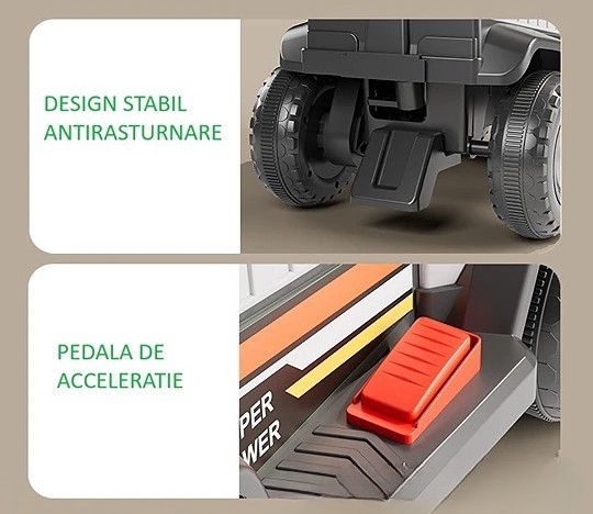 Masinuta Electrica, Flippy, pe 4 Roti, cu Telecomanda si Maner Detasabil, Cos de Depozitare, Lumini Led si Muzica, +1 an, Greutate Portanta 40 kg, Albastru