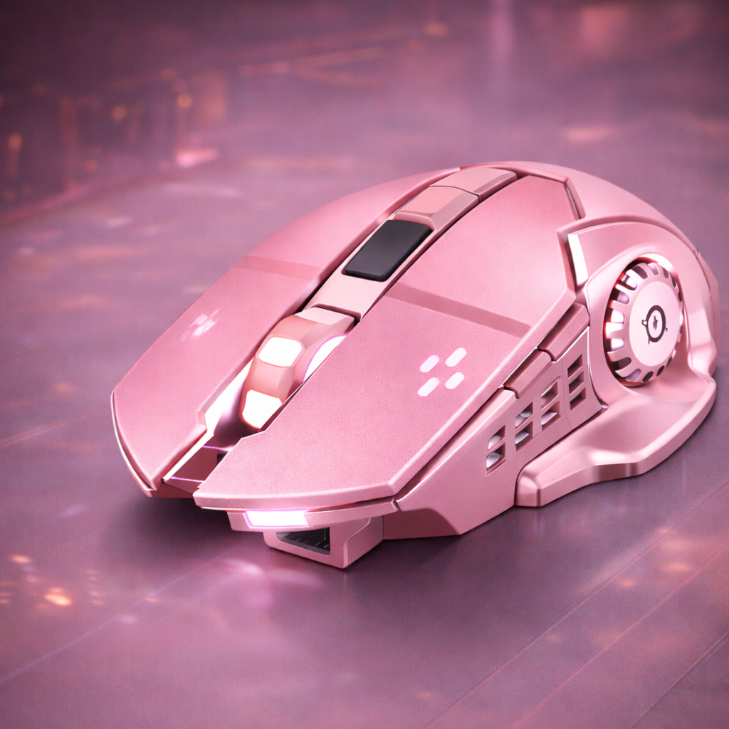 Mouse Wireless, Flippy, 6 Butoane, DPI Ajustabil 1200-3600, Iluminare RGB Tip Breathing, Reincarcabil, 138x80x38 mm, Compatibil MacBook/iPad/Laptop, Roz
