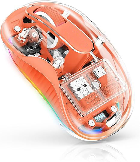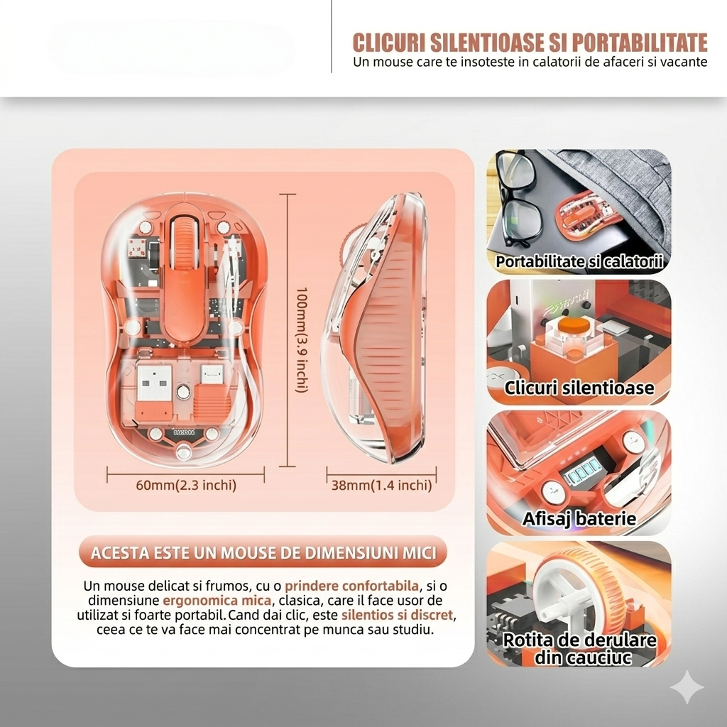 Mouse Wireless, Flippy, Dual Bluetooth, 2.4 GHz, Multi Device, USB-C, 4 Niveluri DPI 800-2400, Reincarcabil, Iluminare LED, Compatibil MacBook/iPad/Laptop, 10 x 6 cm, Portocaliu