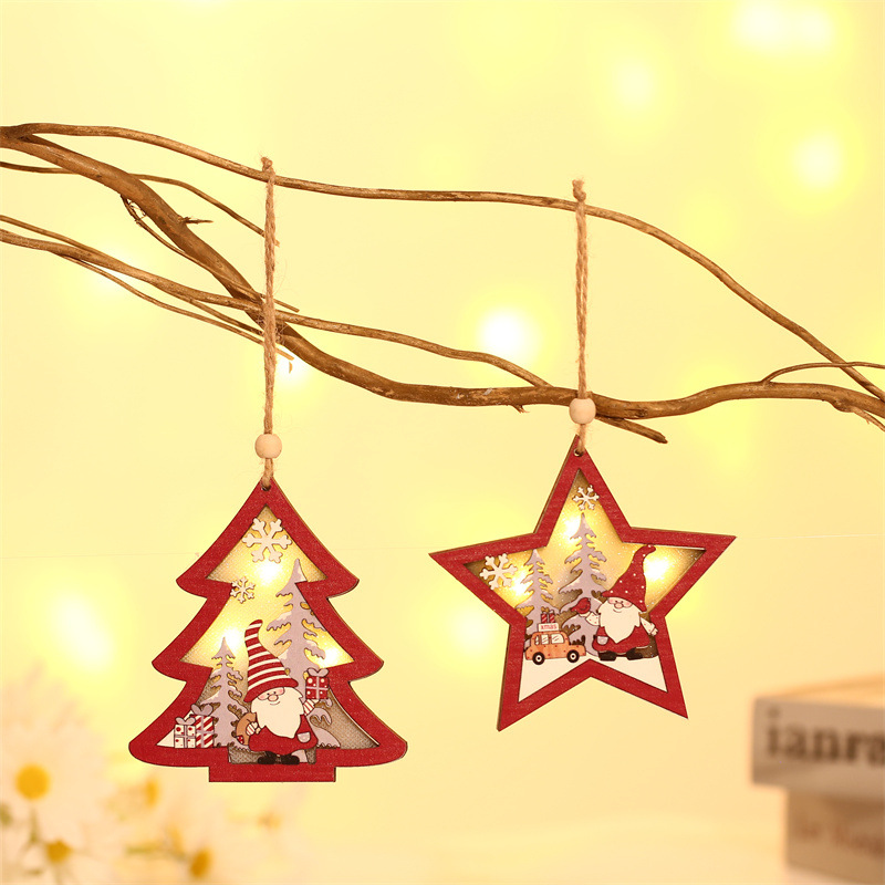Ornament de Brad, Flippy, cu Lumini LED, din Lemn, Figurina Elf, Model Stea, Multicolor
