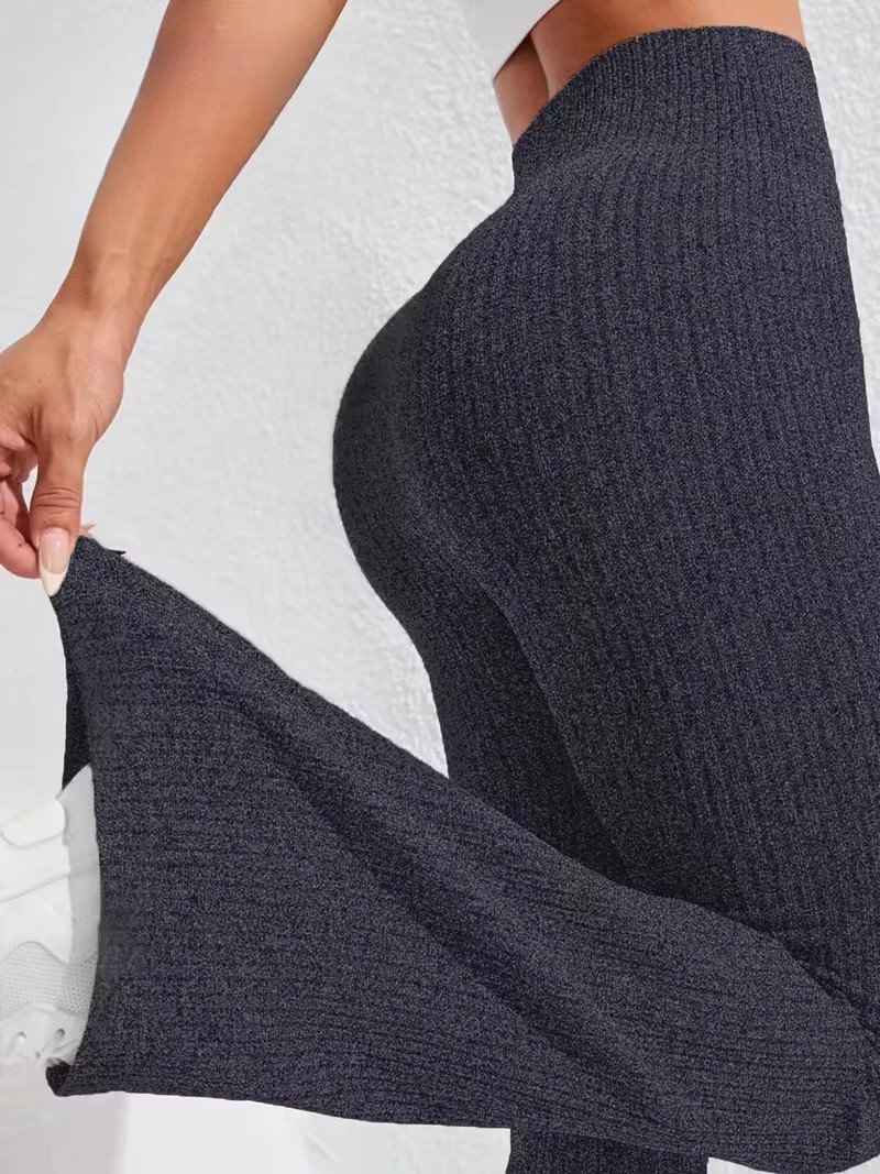 Pantaloni Sport de Dama, Flippy, pentru Yoga, Talie Inalta, Evazati, Tricotati, Albastru Marin, Marime XL